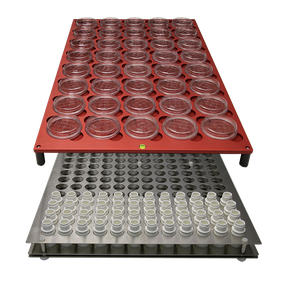 Suitable for any rack from small 96 well format, typical Microbiology racks holding high glass tubes, up to customized beaker/ bottle holders or any other regular racked lab containments can become filled.
